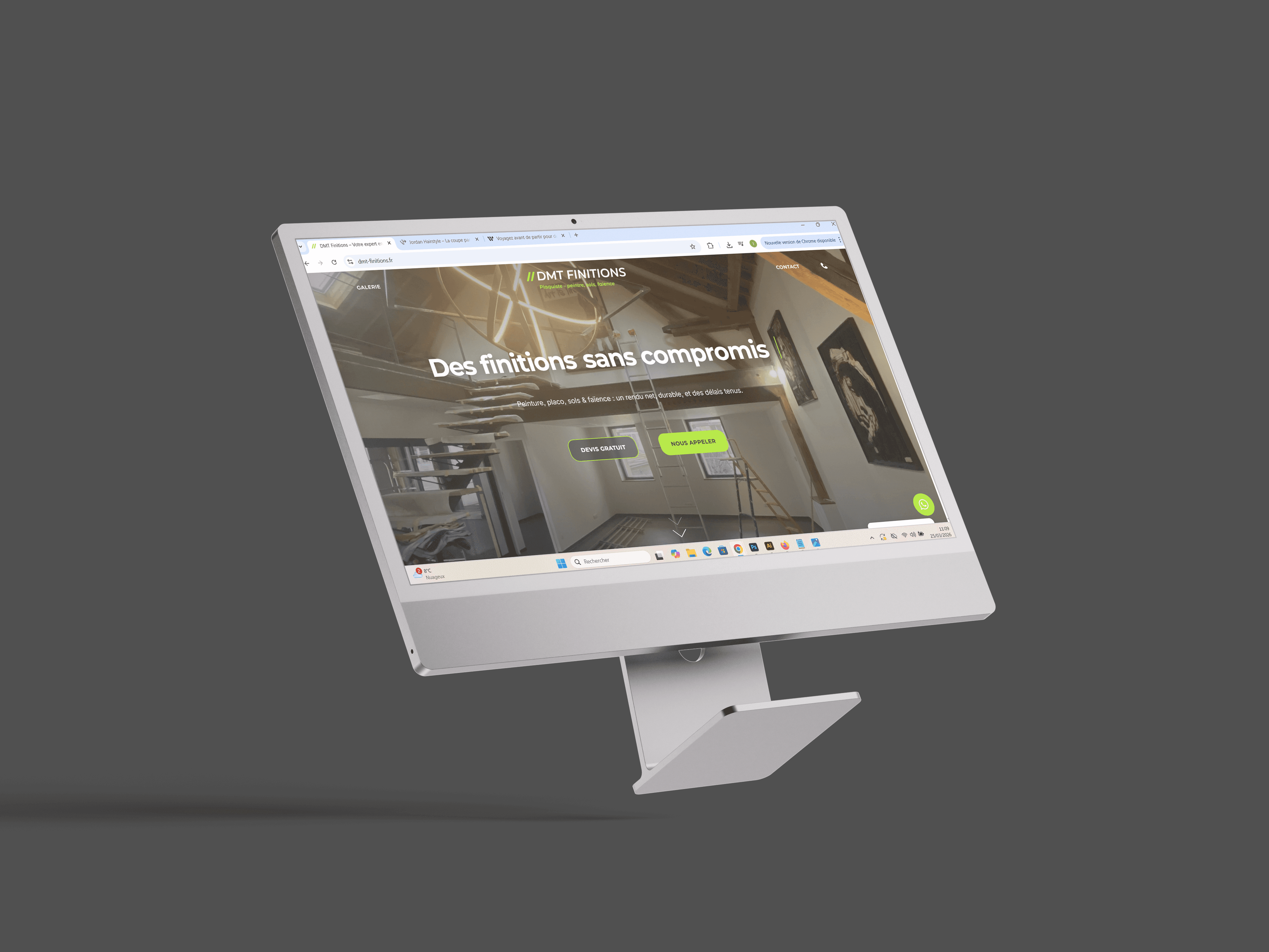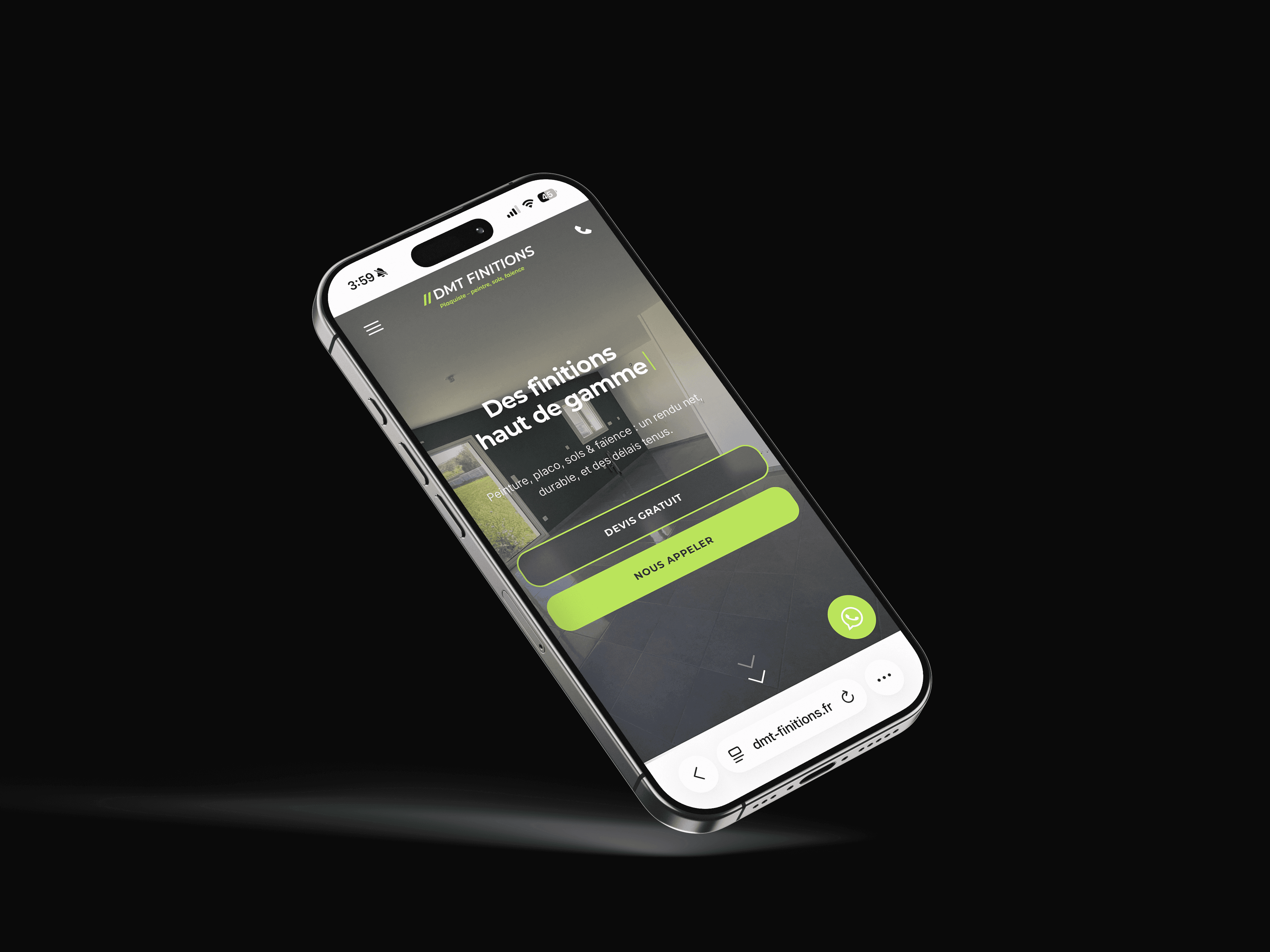 DMT Finitions est un artisan spécialisé en peinture, placo, faïence et revêtements de sols. L’objectif du projet était de créer un site vitrine moderne et rassurant, afin de renforcer sa crédibilité, présenter ses réalisations et faciliter la prise de contact pour de futurs chantiers.
